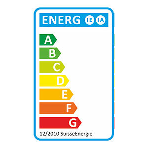 ![]() | L'étiquette "énergie" est une déclaration officielle de l'Office fédéral de l'énergie renseignant sur la consommation d’énergie et sur d’autres caractéristiques d’un produit (voitures de tourisme, pneus, lampes, appareils ménagers, fenêtres et appareils sanitaires). L'échelle de notation va de la classe A (faible consommation d'énergie) à la classe G (forte consommation d'énergie). |